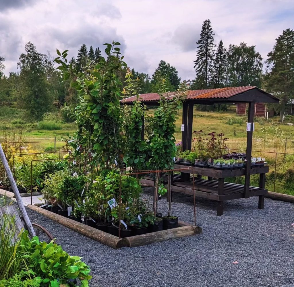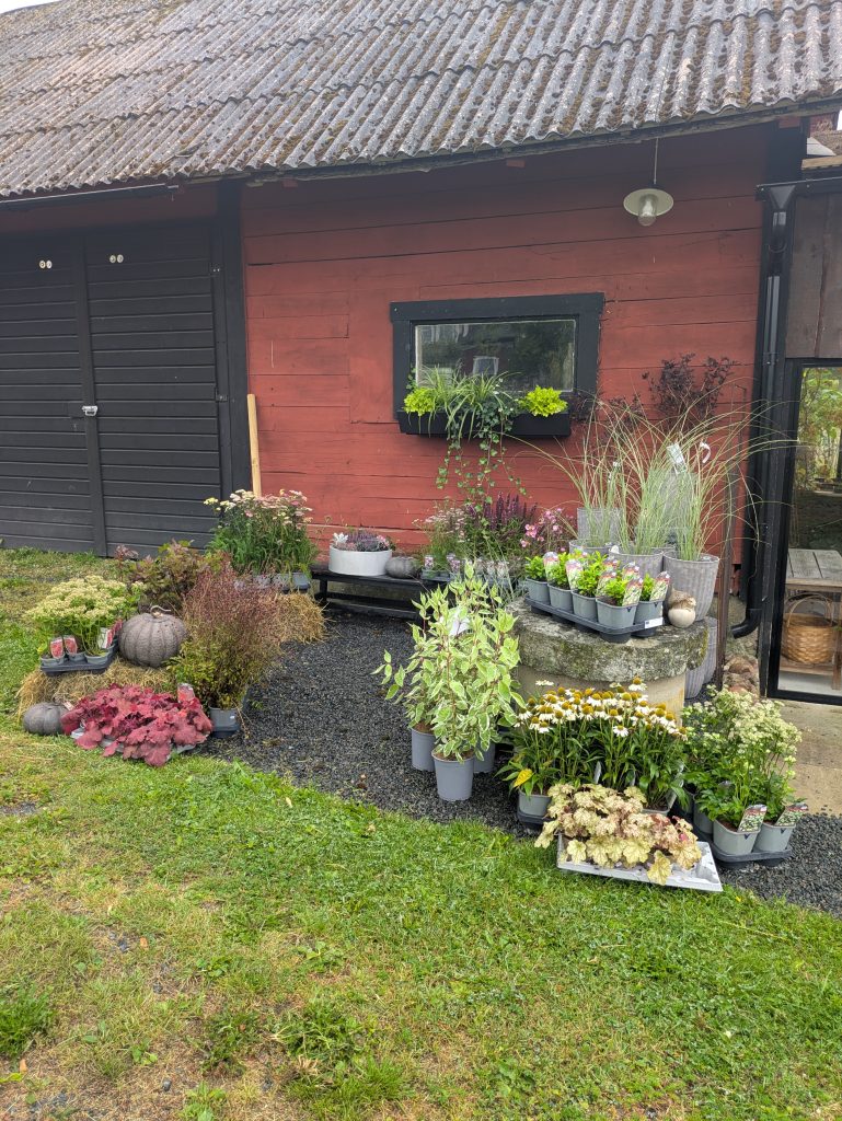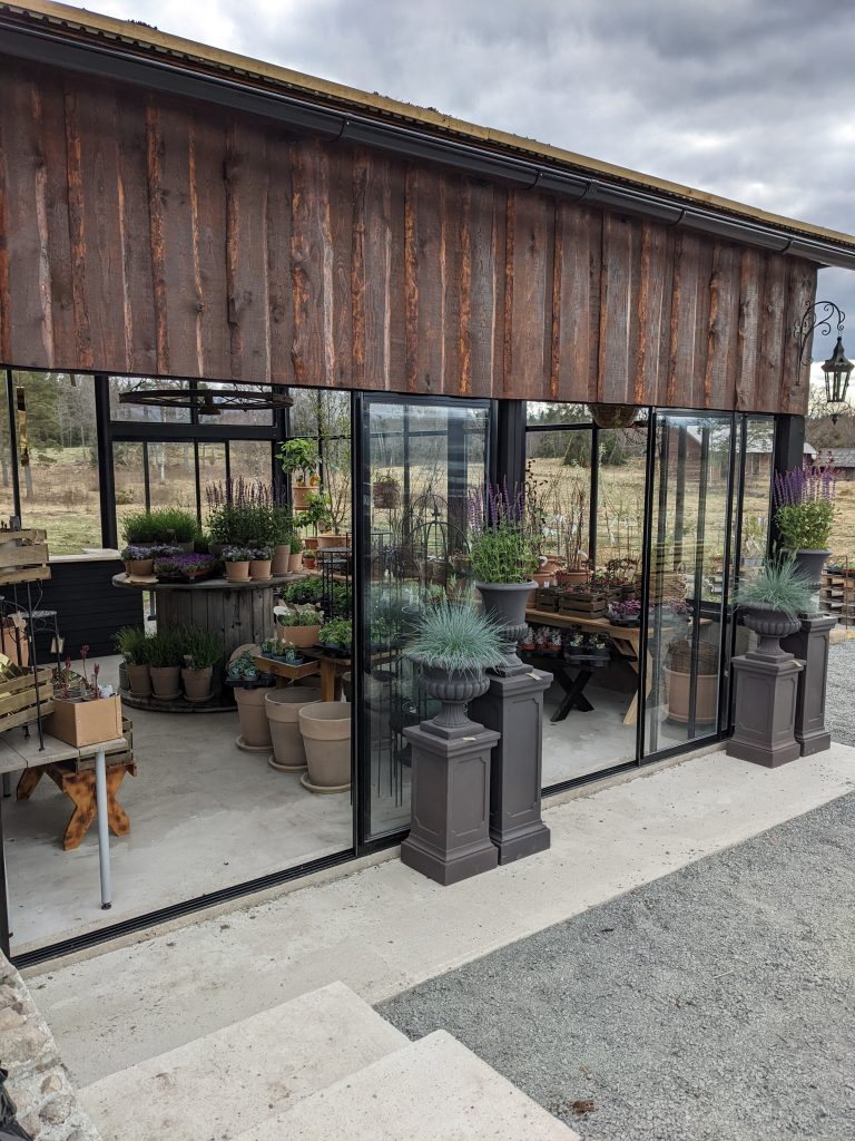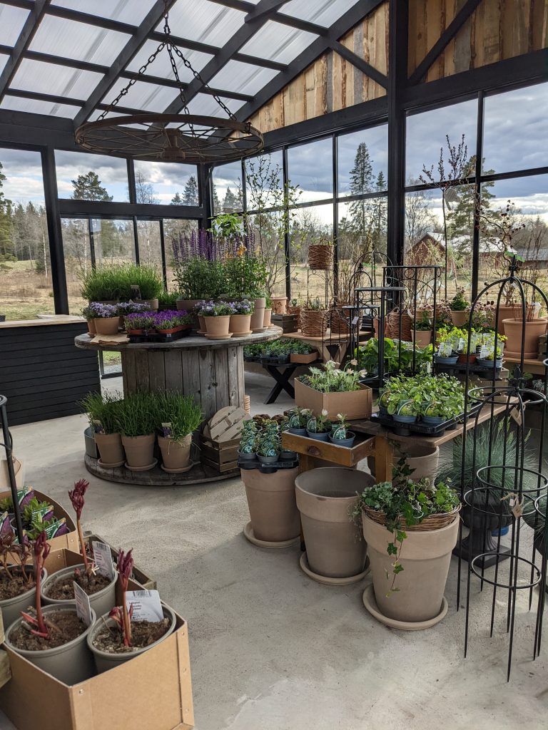 På våren (ca april-midsommar) och hösten (september) öppnar jag upp min lilla trädgårdsbutik där jag säljer perenner, buskar och träd som huvudsakligen trivs i vår zon 4-5 här på småländska höglandet. Det finns även krukor, spaljéer och annat som kan lyfta utemiljön. Om det är något speciellt du söker så beställer jag gärna hem det till er.